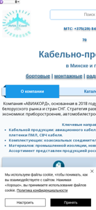 | AI-анализ | The website "АВИАКОРД.BY" is an e-commerce platform specializing in the sale of cabling and related products in Belarus and the CIS region. The company, founded in 2018, focuses on supplying electrical equipment to industries such as electronics, automotive, defense, aerospace, and oil and gas. Key product categories include aviation cable, bus cable, radio frequency cable, industrial isolation materials, and connectors. The company offers a wide range of products from Russian, Belarusian, and imported manufacturers. Their advantages over competitors include professionalism, extensive experience, flexible discounts for regular clients, quality assurance through certificates and product specifications, a large inventory of popular items, and quick delivery. Customers can also receive expert advice from specialists. If customers cannot find the desired product in the catalog, they can fill out a contact form with |