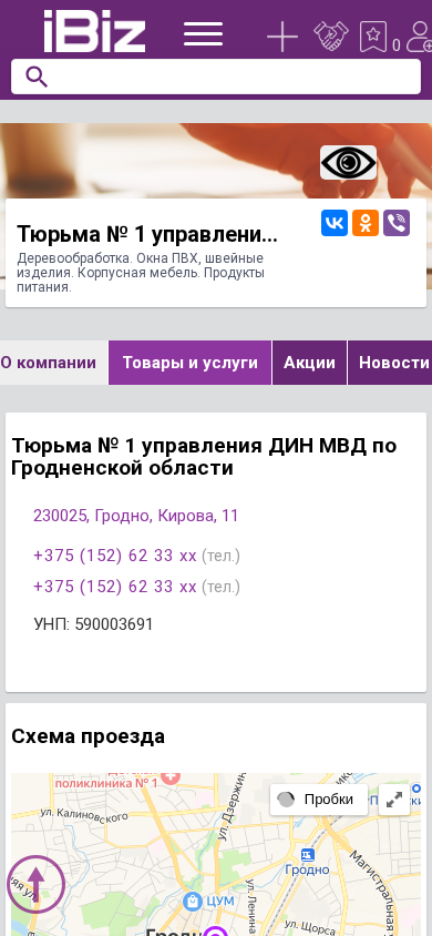 | Название / Заголовок | Тюрьма № 1 управления ДИН МВД по Гродненской области - Деревообработка. Окна ПВХ, швейные изделия. Корпусная мебель. Продукты питания. . 230025, Гродно, , Кирова, 11 |