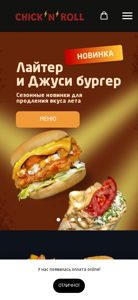 | AI-анализ | This website is a restaurant or cafe based in Stolbtsy, Belarus, specializing in burgers and rolls. The title and description indicate that the establishment offers "the juiciest burgers and original rolls in Stolbtsy." The keywords include various food items such as sauces, burger, and delivery in Stolbtsy. The top words suggest that the menu is an important part of the site, and that contact information and methods of payment are also provided. The menu includes items like Country Roll with chicken grill, smoked sausage, and potatoes, as well as a new menu with shrimper and starter. The site offers online ordering and payment, with delivery or self-pickup options. The domain name is <https://chicknroll.by>. |