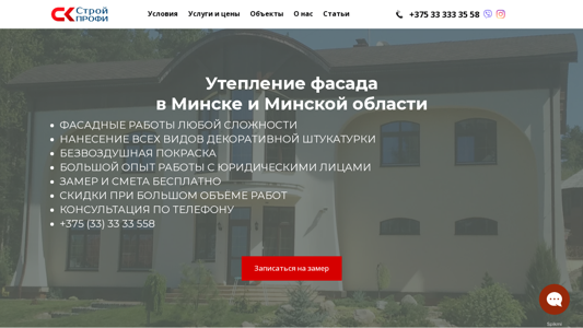 | SEO-описание | Профессиональное утепление и отделка фасадов домов в Минске и Минской области .Бесплатный выезд замерщика, расчёт сметы онлайн. Гарантия на выполненные работы до 5 лет! Звоните! |