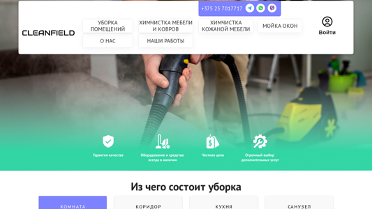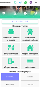 | AI-анализ | type: website The web project Cleanfield.by offers cleaning and maintenance services for various types of living and working spaces, including apartments, offices, and cottages. Keywords associated with the site include 'cleaning and maintenance of rooms, offices, and cottages', 'mattress cleaning and decontamination', 'cleaning of sofas and other furniture', and 'window cleaning'. The site also provides additional services such as carpet cleaning and repair, odor neutralization, and upholstery repair. Users can contact the company via phone, email, Telegram, WhatsApp, or Viber for inquiries and to schedule services. The site is based in Minsk, Belarus. |