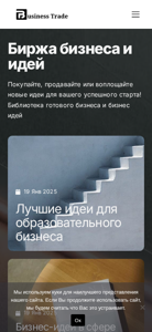 | AI-анализ | The web project BusinessTrade.by is a business ideas and advice platform for entrepreneurs, startups, and investors. It provides users with a range of fresh business ideas, practical advice, and inspiring stories. The site features sections on business ideas, business advice, research, and popular and best business ideas, as well as news, contacts, and a library of ready-made businesses and business ideas. Users can buy, sell, or develop new business ideas. The platform also offers interviews with Belarusian entrepreneurs, articles on starting a business, and information on microfinance, investment, and business planning. Topics covered include starting a coworking space, opening a business for under 5000 rubles, franchising, and online business ideas. The site also features research on the path from idea to first income, and information on business angels and how to work with them. BusinessTrade.by |