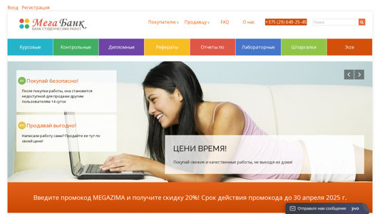 | Название / Заголовок | Покупка готовой курсовой, дипломной, контрольной в Мегабанке студенческих работ |