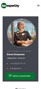 | AI-анализ | This online resource is a tax consulting website for individuals and businesses in Belarus, operated by Elena Antonovna Bekishova. The site offers services related to income tax declaration for professionals, tax declaration for physical persons, social security contributions, tax on profits, NDS optimization, tax liability, simplified taxation system (USN), tax audits, and personal income tax. Additionally, it features news, customer reviews, and contact information for inquiries and consultations. The site also includes information about the services' costs and the importance of a tax consultant. The domain is copyrighted by taxexpert.by from 2015 to 2023. |