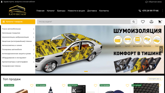 | SEO-описание | Широкий ассортимент материалов для шумоизоляции и автотканей с возможностью заказа доставки прямо на сайте Lovecar.by. Недорогие цены и наличие больших объемов позволяет вам купить шумоизоляцию на авто в одном месте. Отправляем по Беларуси Европочтой и Автолайт. Звоните +375 29 191-77-66 |