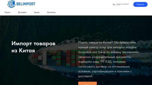 | AI-анализ | The portal Belimport BY is a website offering import services from China. It helps clients find suppliers and goods according to their specifications, assists in obtaining necessary documents such as customs clearance and product certifications, and arranges for the delivery of goods via various methods including air, auto, and rail transport. The company also acts as an importer, purchasing and storing goods in China before shipping them to Belarus. Belimport BY aims to provide a comprehensive range of services for efficient importing of goods from China. |