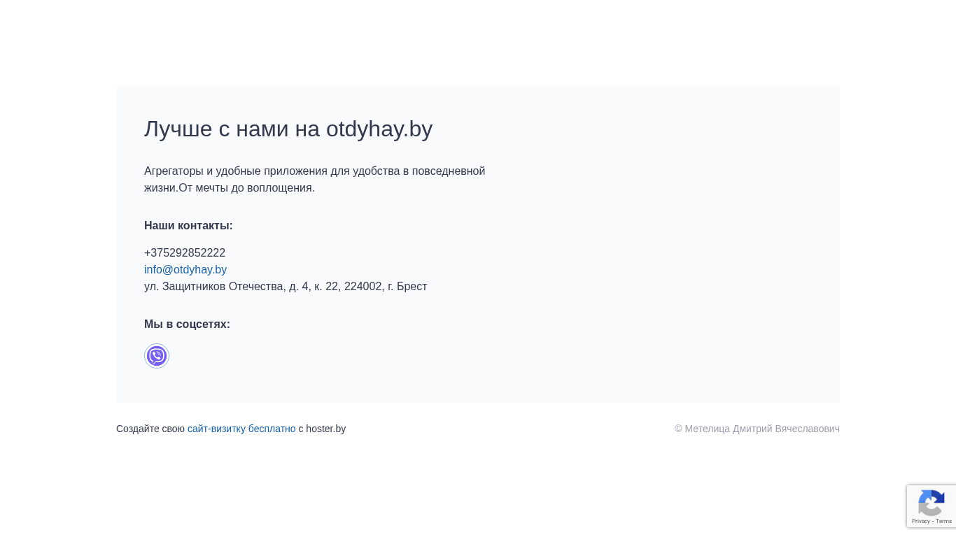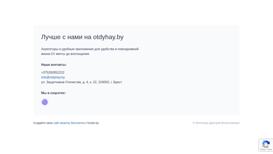 | AI-анализ | This online resource, titled "Лучше с наами на otdyhay.by" (Better with us on otdyhay.by), is an aggregator and provider of convenient applications for everyday life. From dreams to reality. The website contains a contact section with a phone number, email address, and a physical address in Brest, Belarus. Users can create a free website-business card with hoster.by. The website also includes social media links and an option to contact the company with a form. The site's title, "Better with us on otdyhay.by," is repeated several times, emphasizing the convenience and effectiveness of the offered services. Keywords associated with the site include "otdyhay," "agregators," "useful applications," "everyday life," "dreams," "reality," and "contact." |