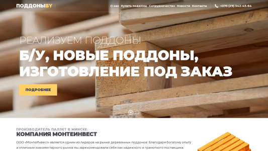 | AI-анализ | This website, titled "Поддоны.by," specializes in the sale, purchase, and repair of pallets. It offers both new and used pallets for sale, as well as custom production. The website also buys used pallets and damaged ones for scrap. In addition to pallets, the site sells tar boards, construction shields, and wood. The company, MонтеИнвест OОO «МонтеИнвест,» is a leading supplier of wooden pallets in Minsk. With extensive experience and expertise in the tar market, it has established itself as a reliable and knowledgeable provider. The main focus of the company's business is the sale and purchase of new and used pallets. It buys pallets and europallets at maximum prices, offering various payment options and pallet exchange for pallets of different categories. The company sells new and used wooden pal |