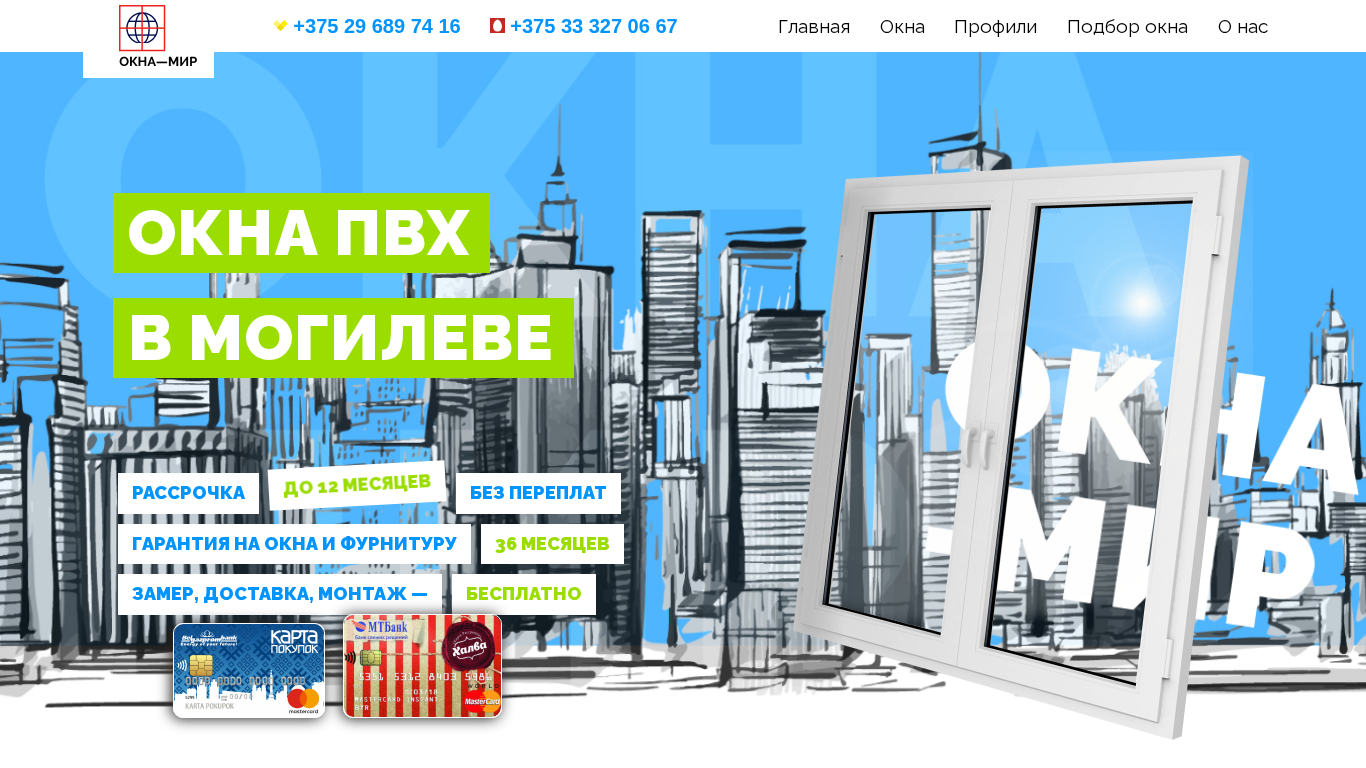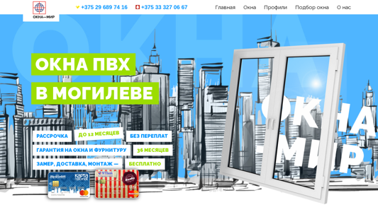 | SEO-описание | Окна ПВХ в Могилеве. Рассрочка до 12 месяцев, без переплат! Гарантия на окна и фурнитуру-36 месяцев! Замер, доставка, монтаж-бесплатно! |