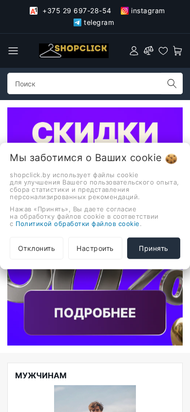| AI-анализ | --- This website is an online shopping mall named SCHOPCLIK, registered under the Belarusian .BY domain. Its title, description, and keywords all indicate that it is an e-commerce business. The most frequently occurring words in the website's content include 'cookie', 'файлов', 'файлы', 'мужчинам', 'сайта', 'принять', 'поиск', 'войти', 'новости', 'обратная', 'связь', 'оплата', and 'доставка'. The top-level categories for this website are 'МУЖЧИНАМ' and 'ЖЕНЩИНАМ', with sub-categories for various types of clothing, footwear, and accessories for both men and women, as well as sections for children. The website offers a shopping cart, personal account management, |