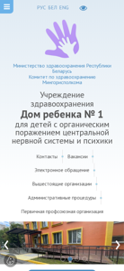 | AI-анализ | --- The web project "Дом ребенка № 1 для детей с органическим поражением центральной неvрной сиstемы и психики" is a healthcare institution in Minsk, Belarus, dedicated to assisting children with organic damage to the central nervous system and psychology. The website provides information about the organization, its services, and contacts. Keywords associated with the project include 'help', 'September', 'children', 'healthcare', 'Belarus', 'home', 'child', 'organic damage', 'central nervous system', 'psychology', 'committee', 'work', 'service', 'information', 'personal data', 'day'. The project is operated by the Ministry of Healthcare of the Republic of Belarus and offers medical, palliative, pedagogical, occupational safety, and social support services. |