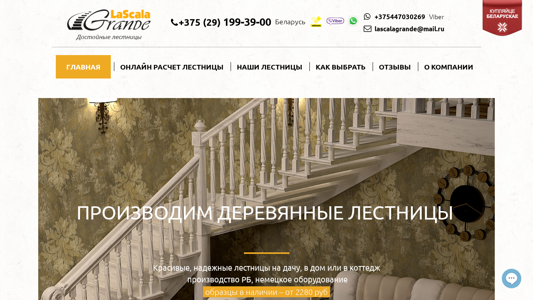 | AI-анализ | The web project "LaScalaGrande.by" is a website dedicated to the production and sale of wooden staircases in Minsk, Belarus. The site offers various types of wooden staircases for different locations, such as second floor apartments, cottages, and even for homes with metal carcasses. Customers can order a wooden staircase for their dacha, choose between vintova (spiral) and regular designs, and even opt for a "Z-Step" model. The site includes a catalog of individual elements, such as balusters, posts, and steps. Visitors are encouraged to plan their staircase carefully, ensure it is both convenient and safe, and then place an order. The site also mentions dealers and customer reviews, as well as a new showroom in Minsk. Production takes place in Belarus using German equipment, and prices start from 2 |