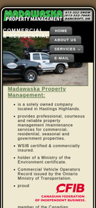 | AI-анализ | The web project "Madawaska Property Management" is a property management company based in Hastings Highlands, Ontario. The business specializes in providing professional, courteous, and reliable services for commercial, residential, seasonal, and government properties. The company is WSIB certified and commercially insured, and holds a Ministry of the Environment certificate and a Commercial Vehicle Operators Record issued by the Ontario Ministry of Transportation. Services offered include haulage, landscaping and lawn care, winter operations, commercial and residential sweeping, and more. Keywords related to the business include property management, Madawaska, management, commercial, residential, services, haulage, landscaping, lawn care, winter operations, and more. |