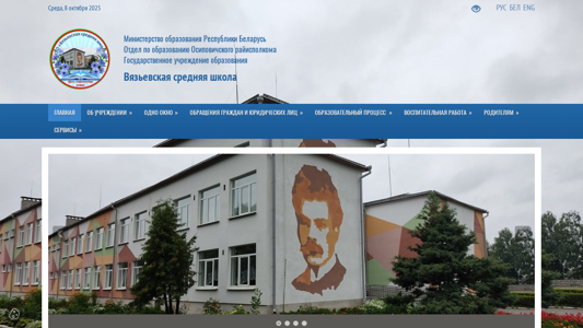 | AI-анализ | The portal viazye.osipovichiedu.gov.by is a Belarusian language educational website for Vyazevskaya Srednyaya Shkola. The title is "Вязьевская средняя школа" and the description includes words such as "shkola," "srednia," "obrazovaniya," and "ucrezheniya," indicating it is a secondary school. Keywords include "podrobnee," "sentyabrskaya," and "oktyabrskaya," suggesting the school may have important dates in September and October. The top words are predominantly related to education and the Belarusian language. |