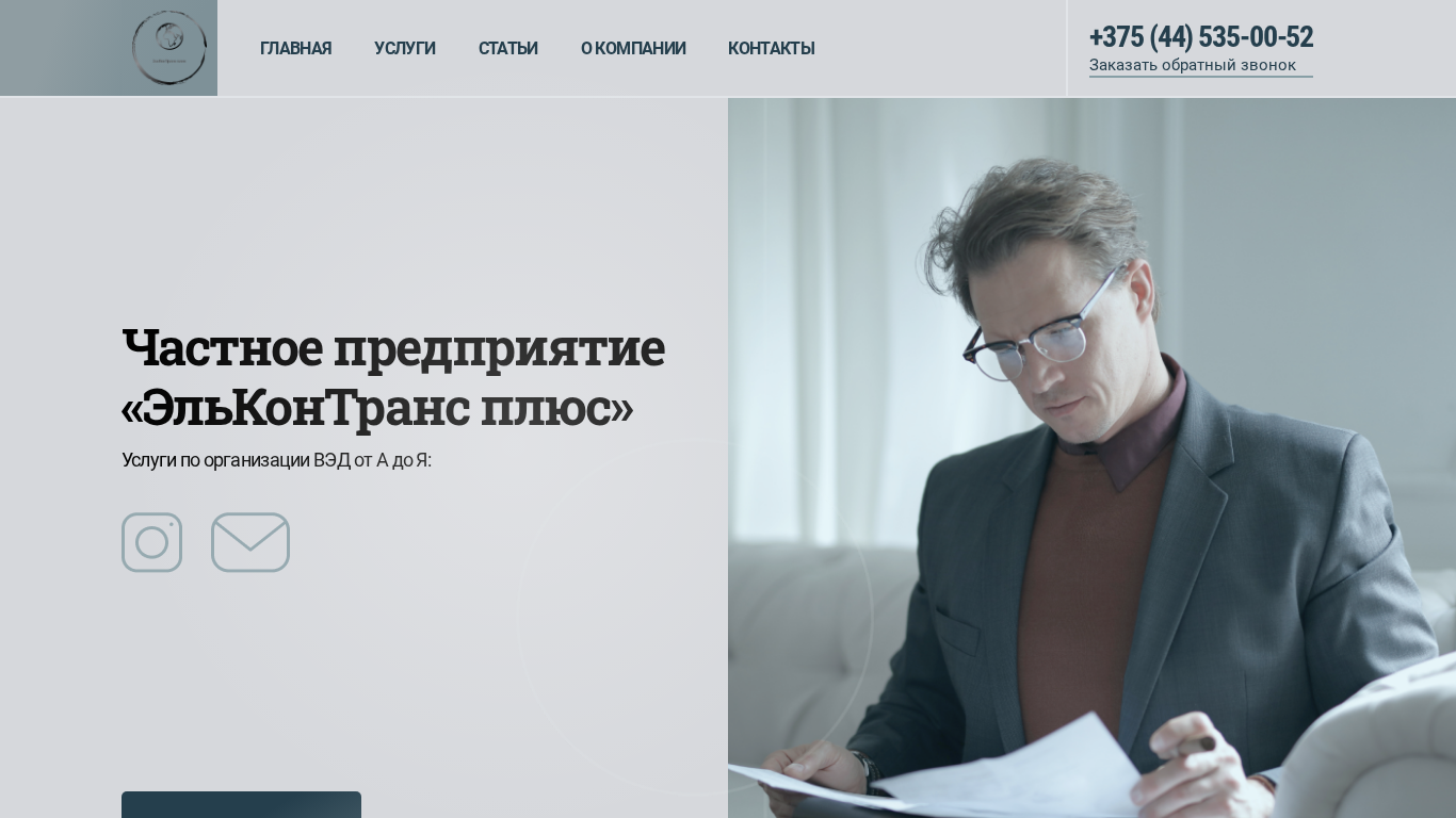 | SEO-описание | ЧТУП «ЭльКонТранс плюс» - таможенный брокер, декларант или представитель в РБ. Наше таможенное агентство - это опыт и репутация, лучше в Беларуси не найдешь! |