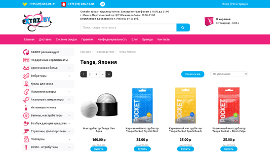 | AI-анализ | The website Tenga.by is an e-commerce platform selling Japanese sex toys, specifically focusing on masturbators. The title of the website is 'Tenga, Япония' and the description contains keywords such as 'мастурбатор' (masturbator), 'купить' (to buy), and 'заказ' (order). The most frequently used words on the website are 'tenga' and 'мастурбатор' with 106 and 68 occurrences respectively. The website offers online ordering with a discount for registration and phone orders from 10am to 9pm. The physical address is given as Minsk, Partizansky pr. 8/15. The website promises free delivery within Minsk for orders over 50 rubles and has a blog, contact information, and a section for brands. The main products |