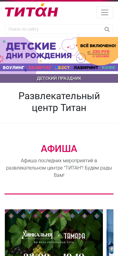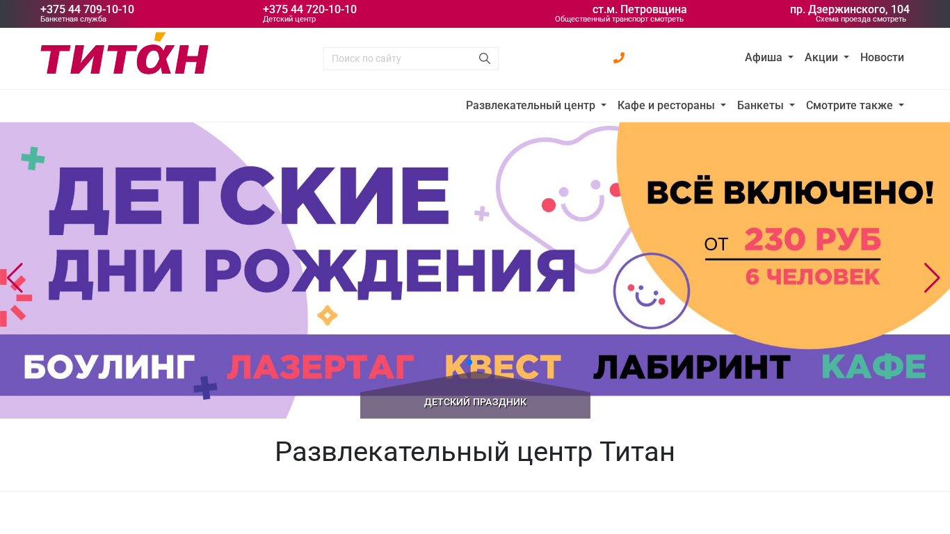 | AI-анализ | The portal Titan is a shopping and entertainment center located in Minsk at Dzerzhinsky Prospect 104, near the Petrovschina metro station. It offers a banquet service, a children's center, and public transportation access at the Petrovschina metro station. The center includes a darts rewards program, a children's labyrinth, bowling, laser tag, a game zone, and a quest called "Superheroes." There are several cafes and restaurants, including Hinkalnia and Odesa-Mama, as well as VIP rooms. Special events, such as the Rtveli-Fest from September 23 to October 19, feature live music. Customers can receive a sweet gift for liking Odesa-Mama on social media. The center also offers party packages for birthdays and children's parties. Additionally |