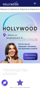| AI-анализ | --- The website "Hollywood Smile.by" is a dental clinic in Minsk, Belarus, specializing in tooth implantation using Straumann and MegaGen implants. The website is run by one of the top implantologists in Belarus, Vitaly Pritykov. Visitors can check the prices for tooth implantation and calculate the cost using an on-site calculator. The website is dominated by the term "Hollywood" and includes numerous mentions of the word, presumably to emphasize the high quality of the services offered. The main page provides links to sections on implantation using Straumann and MegaGen implants, as well as options for restoring one to twelve teeth or both jaws. The website also includes a test to help visitors estimate the cost of restoring their smile, which calculates the price based on the number and type of |