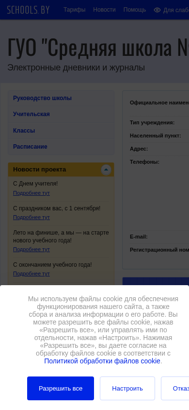 This website is the official page of Middle School No. 31 named after L.G. Kletzkov in the city of Grodno (Belarus) operated under the Schools.by domain. The site uses cookies to ensure its functionality and to collect and analyze data about its operation. Visitors can allow or manage cookies through the site's cookie policy, which includes functional, statistical, and third-party cookies. Functional cookies are necessary for the site to function properly, while statistical cookies are used to improve site performance by collecting user data. Visitors can control their cookie settings in their web browser. The site's title is "Мiddle School No. 31 named after L.G. Kletzkov in Grodno" and its domain is 31grodno.schools.by.