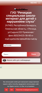 | Адрес | г.Речица, ул.Сыдько,122 Приемная/факс:8(02340)5-56-60 е-mail:spetsinter@deafinternat.by" |