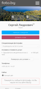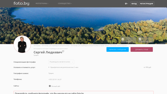 | AI-анализ | The web project "Sergei Ludkevich Photography, Grodno" is a website showcasing the works of photographer Sergei Ludkevich based in Grodno, Belarus. The site is primarily focused on individual photo shoots, as indicated by the title and keywords. The photographer also identifies as a food photographer. The catalog includes various categories of photography services such as those for children, events, families, and food. Users can search for and leave reviews for photographers on the site. The site offers detailed pricing and availability information. The photographer's contact information, including a phone number and personal website, is also provided. |