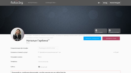 | SEO-описание | Фотографии в категории "Индивидуальная фотосъемка". Сайт фотографа Наталья Гарбина. Я работаю как фотограф для индивидуальной фотосъемки в городах Минск |
