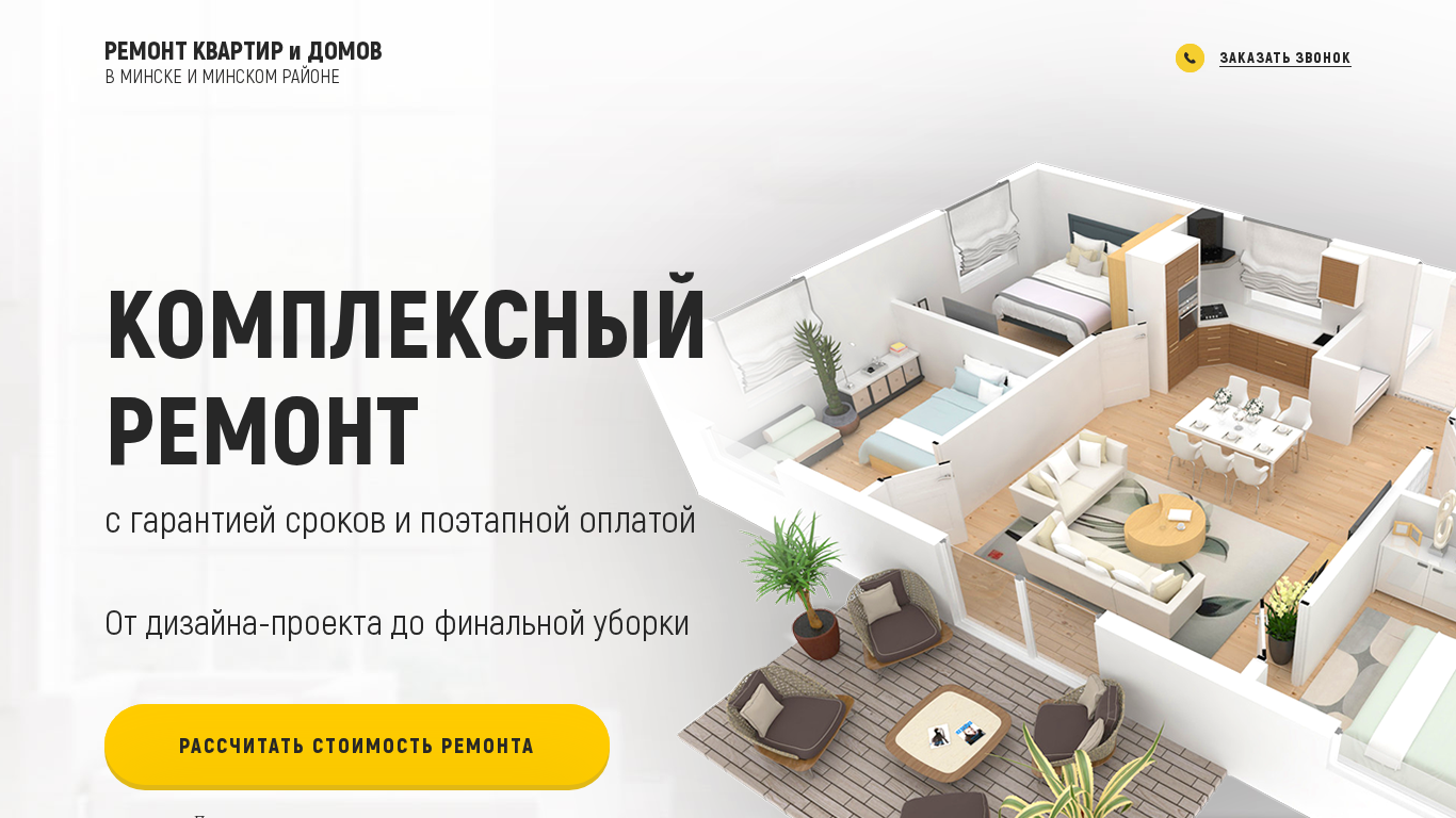 | Название / Заголовок | Ремонт квартир и домов в Минске | Комплексный ремонт квартир с гарантией сроков и поэтапной оплатой |