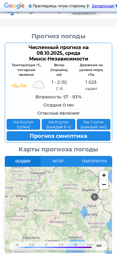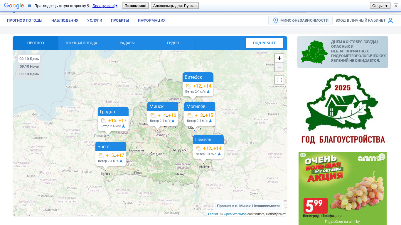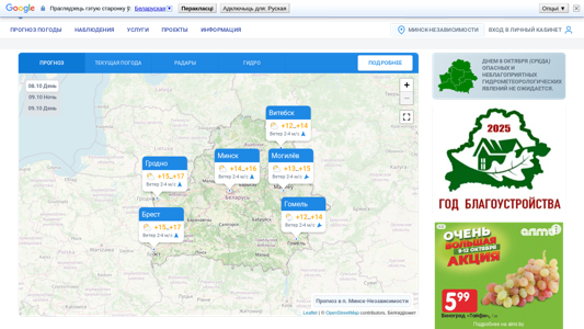 | SEO-описание | Национальная метеослужба Республики Беларусь. Прогноз погоды в Минске, Беларусь на 3 дня. Карты погоды и метеограммы, штормпредупреждения и метеоновости. Метеорологические и радарные карты. Спутниковые снимки. |