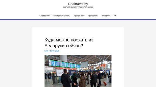 | AI-анализ | The website Realtravel.by is a travel guide for Belarusian residents, titled 'СПРАВОЧНИК ПУТЕШЕСТВЕННИКА' (Traveler's Handbook). The content primarily focuses on providing practical information for travelers from Belarus, including visa requirements, entry conditions, and transportation options. The site features blog articles, such as 'Куда поехать на море в июне, в июле, в ...' (Where to go to the sea in June, July, and ...), which discuss various travel destinations and experiences. The website is updated regularly to keep the information current. The menu includes sections for bus tickets, car rental, transfers, and tours, as well as a search function for finding travel destinations. The site is organized by country in alphabetical order. The most frequently |