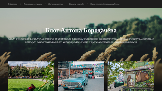 | Название / Заголовок | Блог Антона Бородачёва | Сайт о бюджетных путешествиях. Интересные рассказы о поездках, фотоотчеты, статьи и советы, которые помогут вам отказаться от услуг турагентств и путешествовать самостоятельно |