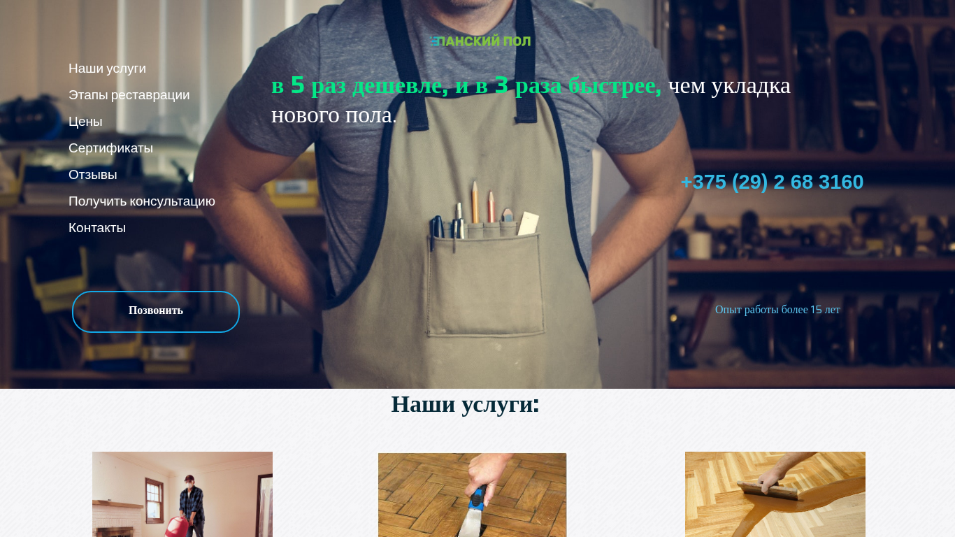 | SEO-описание | Шлифовка, реставрация паркета и дощатых полов без пыли, в кратчайшие сроки с использованием немецкого оборудования и экологических долговечных материалов. |