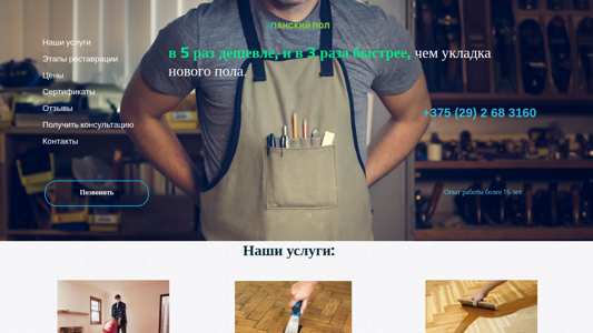 | AI-анализ | The web project "Panskipol.by" offers floor polishing and restoration services for parquet and wooden floors, using German equipment and eco-friendly long-lasting materials. The description mentions that their methods are five times cheaper and three times faster than new floor installation. The website provides information on their services, which include floor polishing and restoration, filling in gaps, texturing, and lacquering. The process involves using a drum-type Hummel machine for initial shaving and a cylindrical machine for removing old coatings and surface layers. A flip machine is used to reach hard-to-reach areas. A trio machine is used for fine-grit sanding, and a polishing machine is used for the final finishing. The site also mentions that they work with high-quality German tools and guarantee the removal of unpleasant odors and stains. The services are meant to address various |