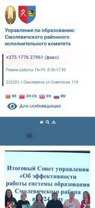 | AI-анализ | The web project "Отдел образования" (Education Department) of Smolevich Regional Executive Committee provides information on educational institutions, their activities, and related services in Smolevich region, Belarus. Keywords include education, institutions, activity, primary, secondary, registration, documentation, and 2025. The website includes sections on general and secondary education, preschool education, normative documentation, enrollment in schools, and organizational structures. Other topics cover project work, guardianship, legal education, and prevention of drug addiction. Services include information on schools, kindergartens, and educational organizations. The website also offers resources for parents and students, such as student diaries and graduation certificates. Additionally, it provides information on educational standards, administrative procedures, and vacancies. The contact details for the Education Department are provided, along with information on their working hours. |