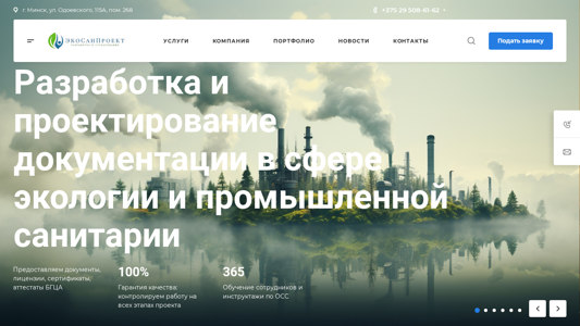 | AI-анализ | This website is a corporate site for Ecosanproect, a Belarusian company specializing in environmental services. The homepage includes information on various eco-related topics such as sanitary protection zones, documentation, waste management, and research. The title is "Главная" (Main) and the keywords include "corporate site," "order," and "buy." The most frequent top_words are "waste," "inventory," "emissions," "work," "zones," "project," "accounting," and "services." The website offers services related to the development of sanitary protection zones, technological regulations, waste inventory, and environmental research. It also provides information on soil testing, aerodynamic testing of ventilation systems, and outsourced environmental consultancy. The company can be contacted at +375 29 508-61-62 or |