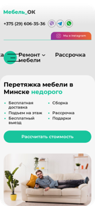 | AI-анализ | The website Mebelok.by offers furniture upholstery services in Minsk and the Minsk region at affordable prices. The website provides information on the cost of upholstery and reupholstery for various types of furniture such as sofas, chairs, office chairs, kitchen sets, corner sofas, and mattresses. The site promises free delivery and installation, as well as a work guarantee. Users can contact the company by phone, with the provided number being +375 (29) 606-35-36. The website also mentions various partnerships with companies such as Pinski, Korsak, Ami-Mebel, Progress, and others. The domain name includes the word "mebelok," which could be derived from the Belarusian words for "furniture" and "work" or "service." The website's top |