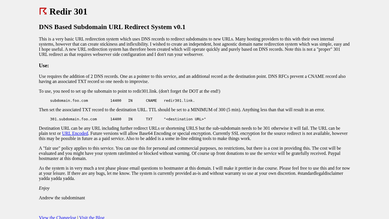| SEO-описание | A basic publicly available DNS only based URL redirection system for subdomains. Just 2 DNS entries required |