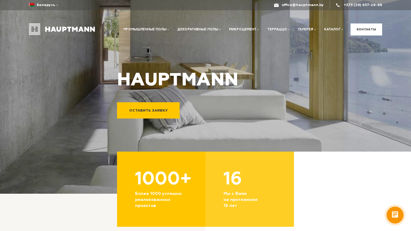 | AI-анализ | url: https://hauptmann.by/ This website is for Hauptmann, a company offering waterproof microcement for floors, walls, staircases, and entrance groups in Minsk and all of Belarus. The company provides the best prices and can be reached at +375(29)690 90 84. The website includes sections for industrial floors for various industries, pourable floors, polymeric coatings, decorative floors, and floors for homes, offices, restaurants, and bars. The website also offers a catalog of flooring systems and materials, and contacts for Hauptmann. The company has over 1000 successful projects and has been in business for 16 years. Hauptmann specializes in epoxyurethan resin flooring, which combines the strength of epoxy resins and the flexibility of polyurethane, and has received |