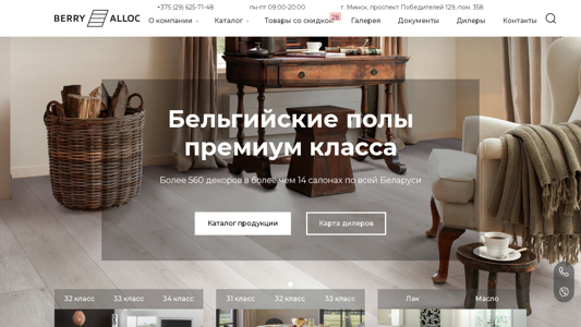 | AI-анализ | --- The portal berryalloc-belarus.by is an official dealer of Berry Alloc, a Belgian flooring company in Belarus. The website offers a wide range of interior solutions for residential and commercial projects, including flooring from laminate, vinyl, and parquet, as well as wall panels. The contact number is +375 (29) 625-71-48. The company's products include various classes of laminate and vinyl flooring, flooring for bathrooms and kitchens, white and black vinyl flooring, and various flooring accessories such as transition strips, door thresholds, and adhesives. The website also features a catalog, news, and information about the company and brand. The company has more than 560 dealer locations throughout Belarus. Vinyl flooring has become a serious competitor |