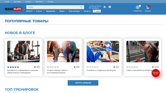 | AI-анализ | --- This online resource is an e-commerce website for Made4life, a sports nutrition, accessories, and equipment store. The website offers sports food delivery in Minsk and all cities in Belarus, with online consultations, detailed product descriptions, recommendations, and a contact number +375296300410. Keywords associated with the site include 'supplements', 'training', 'exercises', 'food', 'made4life', 'gibberish: grub', 'acid', 'recovery', 'growth', 'sports', 'diet', 'Igor', 'complex', 'products', 'women', 'fat-burning', 'meditation', and 'motivation'. The site offers a range of products such as protein supplements, quick and slow carbohydrates, creatines, amino acids, pre |