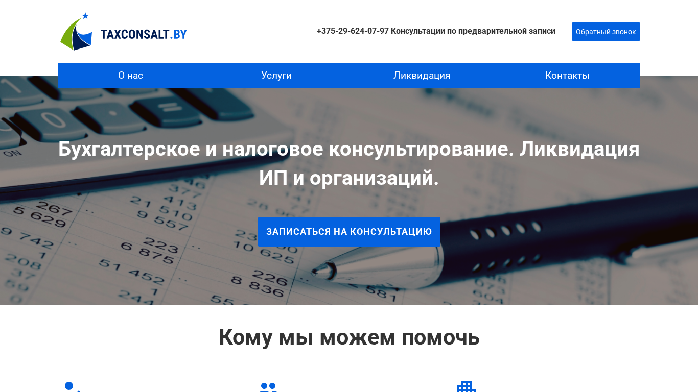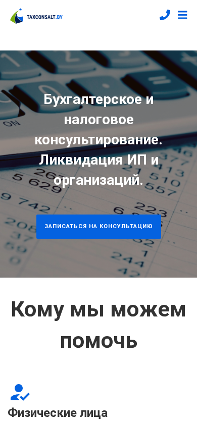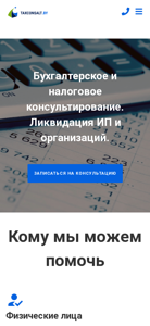 | Название / Заголовок | Бухгалтерское и налоговое консультирование для физических лиц, индивидуальных предпринимателей, организаций. Ликвидация ИП и организаций. |