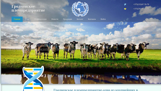 | AI-анализ | --- This online resource is the official website for Grodno Plempredpriyatie, the largest Belarusian exporter of bull semen, boar semen, breeding cattle, young cattle, bull producers, and boar producers. The website provides information on the company's products and services, including the sale of genetically evaluated livestock and semen, as well as consultative support for choosing the right cattle. The company offers a full range of veterinary documents and guarantees successful results in obtaining high-performing offspring. Grodno Plempredpriyatie is one of the leading players in the national sector of selection and genetics in Belarus, offering its products and services both domestically and internationally. The website is available in Belarusian and Russian languages. |
