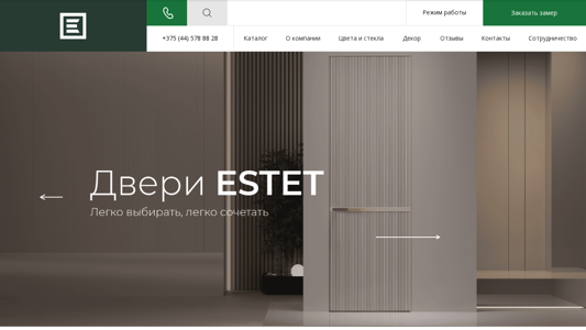 | SEO-описание | Каталог дверей Эстет на официальном сайте. Адреса салонов, где Вы можете купить двери Estet. Минск - ТЦ Град, ТЦ Ленинград. Изготовление нестандартных дверей |