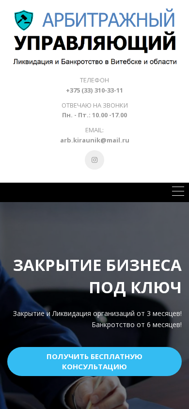 | AI-анализ | --- The web project "Arbitrazhnoy Upravlyayushchiy | Pomoshch' pri Bankrovtstve" (Arb.Kiraunik) is a Belarusian-language website offering assistance to organizations and individuals undergoing bankruptcy proceedings. The site guarantees reliable and professional services with short completion times and moderate prices. The homepage contains information about various bankruptcy procedures, including the sale of assets and business closure. Users can contact the company via phone or email for consultations. The site has been operational since 2017 and has completed 29 projects in the areas of business liquidation and bankruptcy. The team consists of three certified specialists. Besides providing bankruptcy services, Arb.Kiraunik also offers financial rehabilitation consultations for companies and assistance with business sales. Users can request a free consultation by submitting a form on the site or contact |