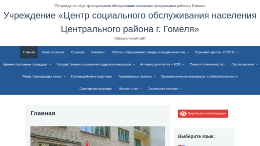 | Название / Заголовок | Главная — Учреждение «Центр социального обслуживания населения Центрального района г. Гомеля» |