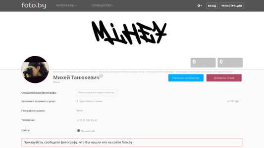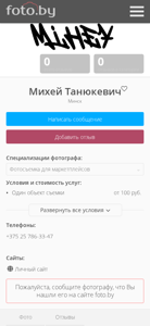 | AI-анализ | --- This website belongs to photographer Michiy Tanyukevich from Minsk, Belarus. The main focus of the site is on photography services for marketplaces. The photographer specializes in capturing products for online sales, and offers his services in Minsk. The site contains various categories of photography, including automobiles, interiors, and events. There are no reviews available for this photographer on the site. The site also includes a community section for photographers and a blog. The site is available in both Russian and Belarusian languages. The photographer can be contacted via phone or his personal website listed on the site. |