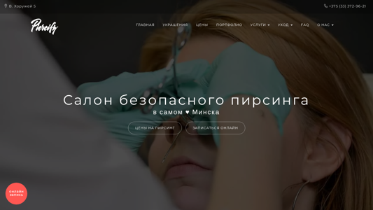 | AI-анализ | This online resource is a piercing salon website named Piercify, located in Minsk, Belarus. The website offers professional piercing services with a 100% sterility guarantee. Each client's care is taken until full healing is achieved. The menu includes various types of piercings, such as ear, septum, lip, and navel piercings, as well as intimate piercings and aftercare services. The website emphasizes the use of sterile equipment, high-quality implantation titanium, and personalized assistance throughout the entire healing process. Piercify has been in operation since 2012, boasts experienced masters with medical degrees, and maintains a portfolio of client reviews. |