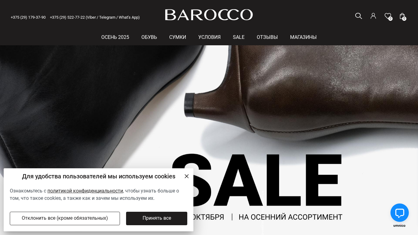 | SEO-описание | Barocco — модная обувь и аксессуары с доставкой по Минску и РБ. 🔥 Большой выбор. ⭐ Гарантия качества. ✅ Оплата 3-мя платежами. ✅ Примерка перед покупкой. ☎️ +375 (29) 179-37-90 |