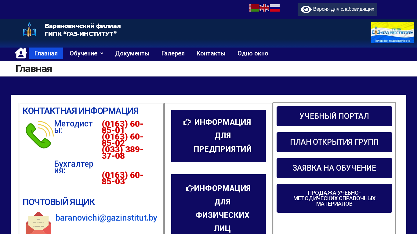 | metodist.baranovichi@gazinstitut.by, baranovichi@gazinstitut.by | |