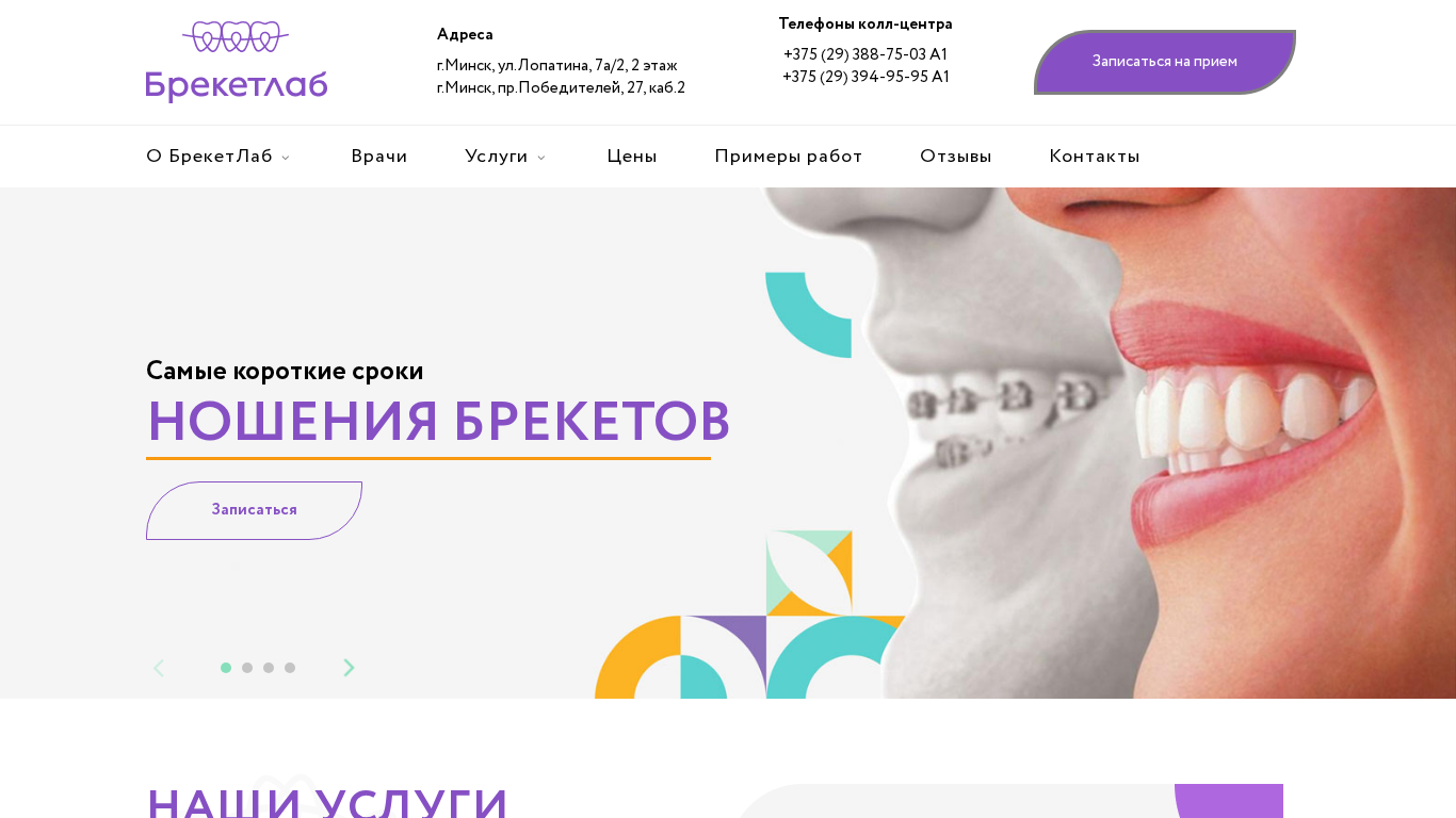 | SEO-описание | Центр ортодонтии «Брекетлаб» предлагает полный комплекс услуг по выравниванию зубов у детей и взрослых в Минске. Рассрочка на установку брекетов, современное оборудование, гарантия результата. |