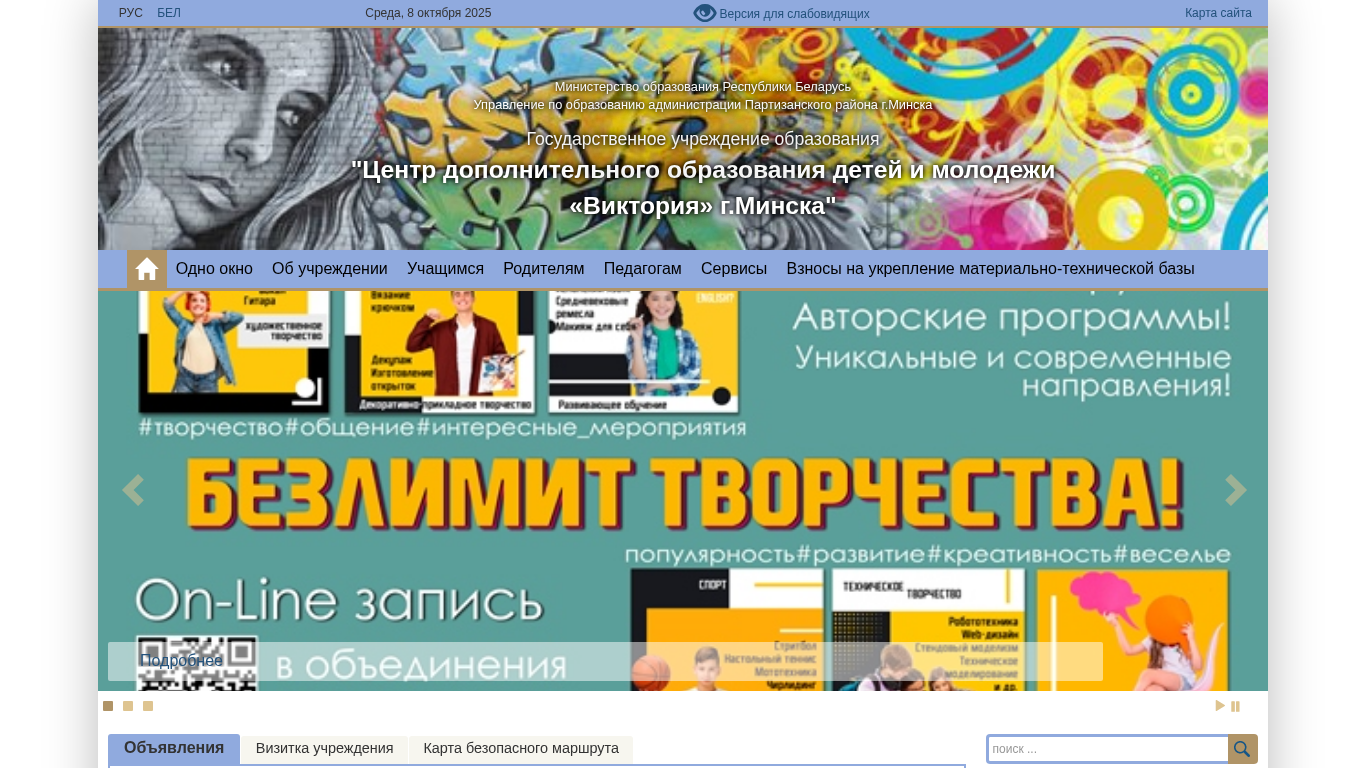 Название / ЗаголовокЦентр дополнительного образования детей и молодежи «Виктория» г.Минска